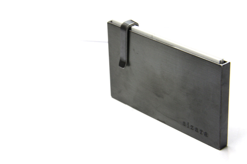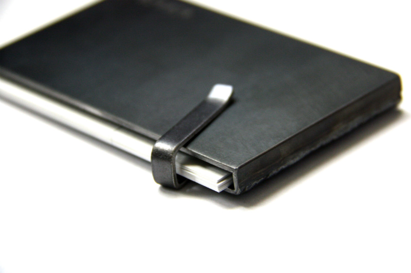 鉄は箱と留め具だけのミニマルな名刺ケース。
