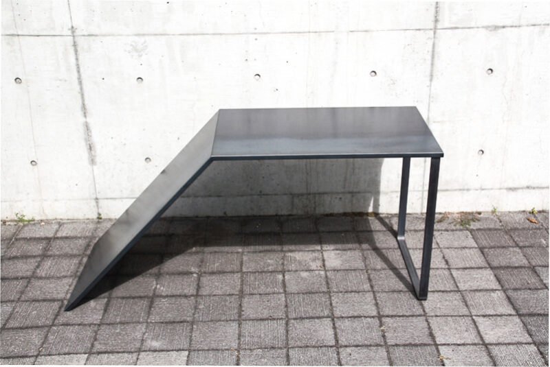 構成されるラインを細くすることで鉄の持つ強さを表現し、天板には敢えて