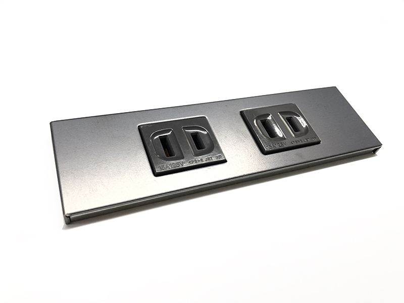 マグネットで取り付ける黒皮鉄の家具プレート2口タイプです。
