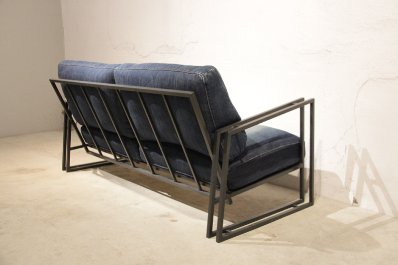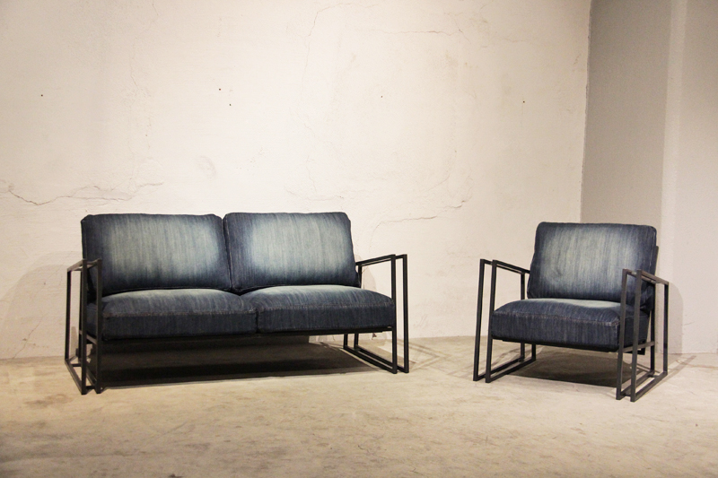 ソリッドな無垢の黒皮鉄にヴィンテージ加工を施したデニムを合わせることで少しカジュアルな仕上がりに。どんなお部屋にも合わせやすい組み合わせです。